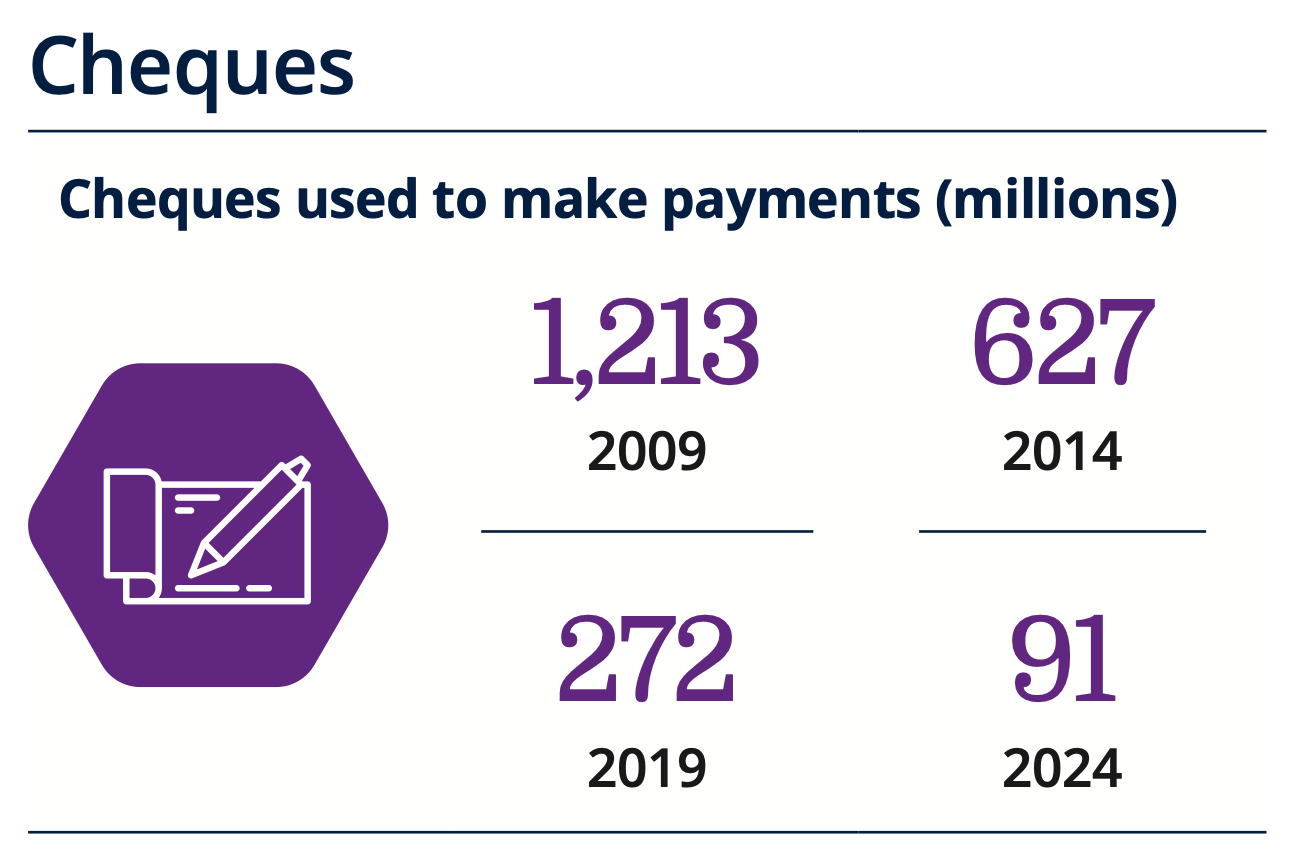 Cheque usage plunged 17% in 2024 to 91 million, as both businesses and consumers increasingly switch to modern payment methods.